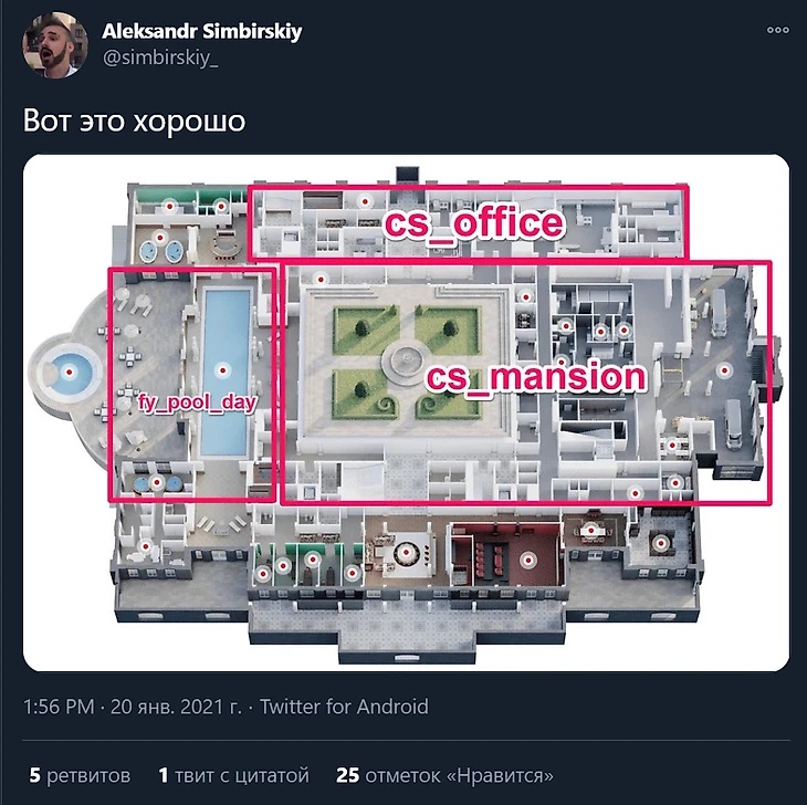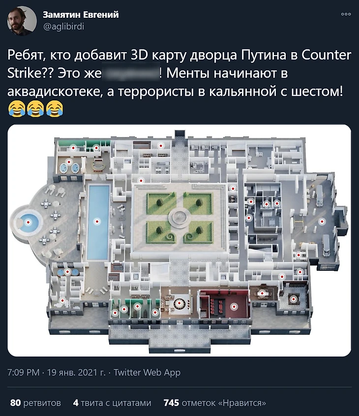 18 января Алексей Навальный выпустил новое видео на своем ютуб-канале о просторной и роскошно обставленной резиденции Владимира Путина. Скриншоты этого дома моментально разлетелись по твиттеру – особняк сравнивают с Counter-Strike, «Ведьмак 3», Dark Souls и другими играми.