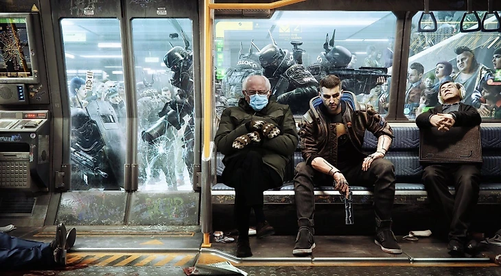 • В Cyberpunk 2077 пользователи предложили ему роль Джонни Сильверхенда. Смотрится странновато, а вот как NPC в метро – идеально.