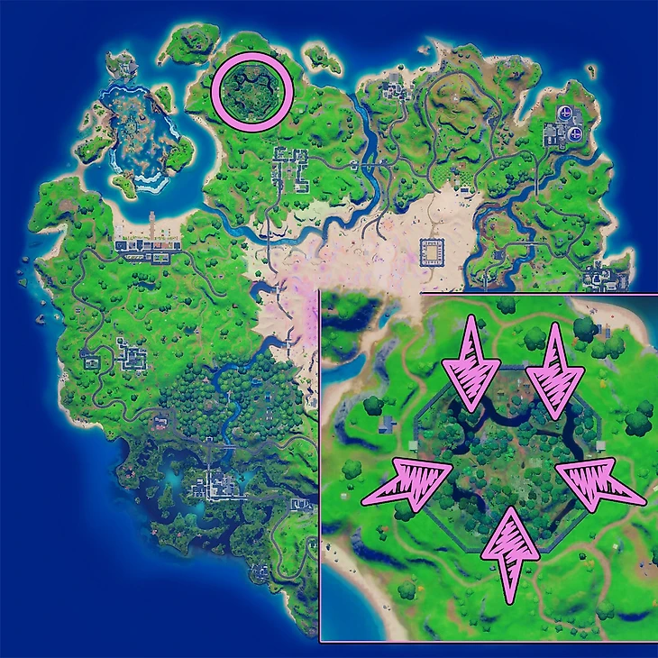 Известно, что с течением 15 сезона Фортнайт в Тайной твердыни был обнаружен корабль Хищника, именно там, на северо-западе локации, и находится босс.
