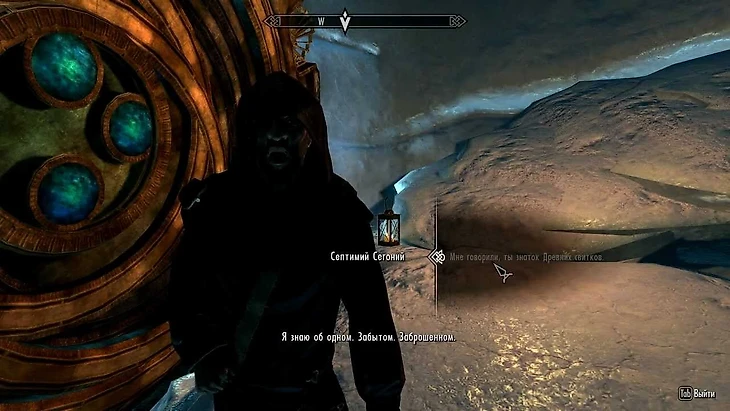 Перед самым выходом из его пещеры появится бесформенное многоглазое чудовище – даэдрический бог знаний Хермеус Мора. Он выжал из Септимия все, что можно, и старый маг стал ему практически бесполезен. А вот помощь Довакина для открытия неизвестного двемерского куба ему пригодится. Уже после зачистки пещер и добывания эльфийской крови двемерский «сундук» откроется – и Септимий исчезнет, потому что слуга стал окончательно бесполезным для своего жестокого хозяина.