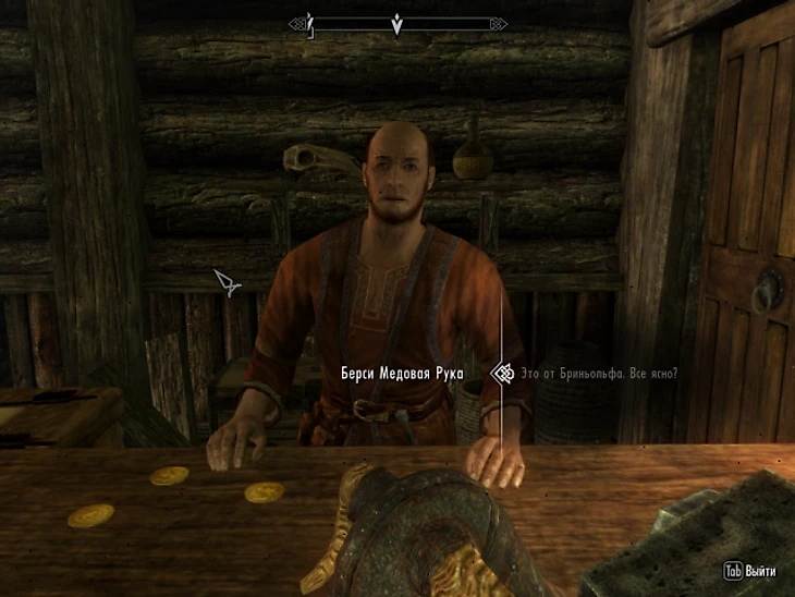 Рядом с телом лежит ее дневник с милыми и слегка наивными записями о влюбленности и грядущем побеге. Она подготовила целый план – попросила отца взять ее с собой в поездку, сбежала ночью из таверны и встретилась с Тальвуром в холмах неподалеку от Логова Сольюнда. Только их планы нарушил как раз тот дикий зверь, которого Довакину придется убить. Кстати, тайнике Тальвура действительно лежит немного золота и меч.