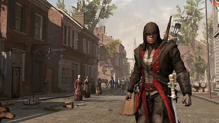 Технически Assassin’s Creed 3 превосходил предыдущие игры и по общему уровню графики, и по анимациям, и по механикам – здесь, например, появились враги с мушкетами, от которых нужно уворачиваться или закрываться живыми щитами. В арсенале героя оказались не только мечи и скрытые клинки, но и томагавк, лук и улучшенный пистолет.