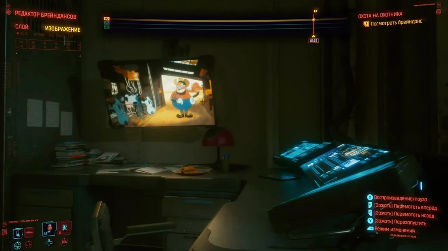 Встречается баг, в котором не появляется кнопка выхода из брейнданса. Просто зажмите X на клавиатуре или аналогичную на геймпаде – игра закроет брейнданс без проблем.