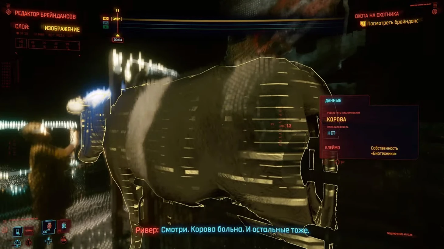 Следующий брейнданс еще более тревожный – в нем взрослый Питер Пэн догоняет уползающего с фермы парня. Остальные подключенные к гормонам подростки лежат там, где раньше находились коровы его отца. Сканируйте все, что подсвечено желтым, когда подсказка загорается на таймлайне – так вы узнаете примерное местонахождение этой фермы.