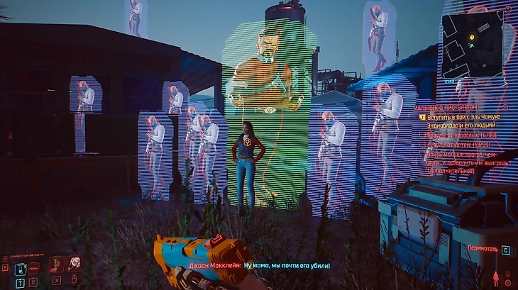 Разговор прервут младшие дети Джосс – Моника и Дориан. Они позовут Ви в игру с дополнительной реальностью, в которой нужно стрелять по целям. Дети расскажут, что на самом деле это охота на опаснейшего преступника.