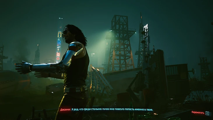 Джонни: «Слушай, я понимаю, что ######### [облажался] по всем фронтам. Я разочаровал или обманул всех, кто мне верил. Запомнился всем как бесчувственный эгоистичный мудак. Но кое-что мне все-таки удалось. Мне удалось не ######## [разрушить] то, что нас связывает».Ви: «Нет, это ты тоже ####### [потерял]».Джонни: «Большинство тех, кого я считал друзьями, даже в одной комнате со мной с трудом могли находиться. Ты оказался моим самым близким человеком, Ви. Мы же круглые сутки вместе. Несмотря на это, я почему-то не вызываю в тебе ненависти».