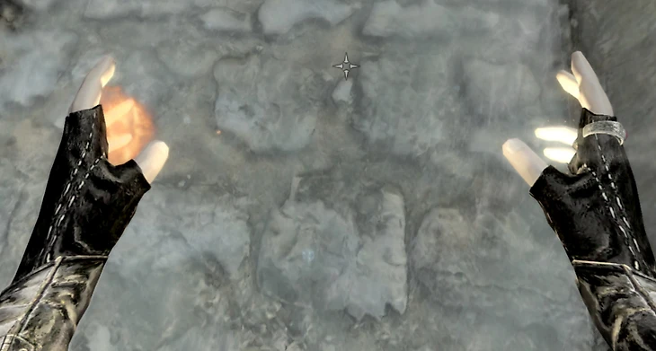 Трюк работает не со всей водой и не со всеми заклинаниями огня. Нужно найти неглубокий спокойный водоем (каналы Вайтрана подойдут) и взять стартовое заклинание пламени, доступное всем расам.