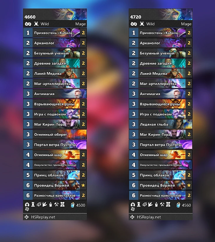 Они отличаются на 1-2 карты, поэтому здесь будет только код двух колод с высочайшим винрейтом.