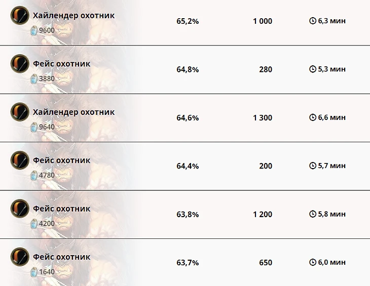Нас интересуют не хайлендер-колоды с несколькими легендарками, а старый, всем знакомый архетип фейс-охотника. Даже версия без легендарных и эпических карт за 1640 пыли держится с положительным винрейтом.