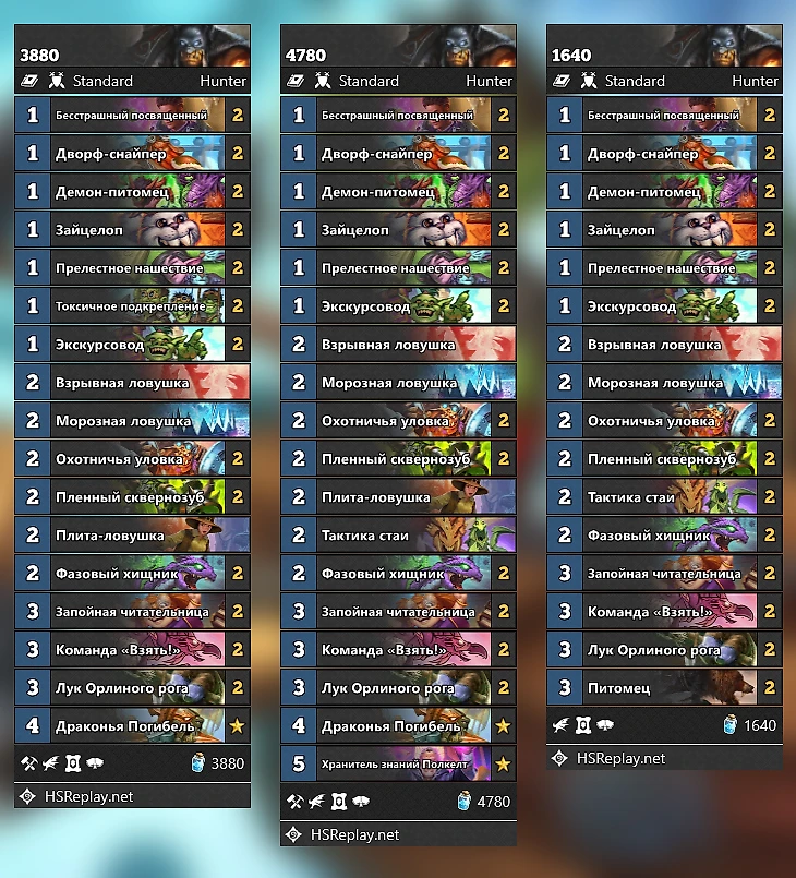 Но это, конечно, вариант для авантюристов и совсем начинающих. В охотнике подороже используется «Драконья погибель» и две копии «Токсичного подкрепления».