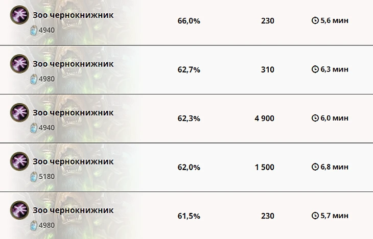 В топе по винрейту целых пять версий зоо-чернокнижника, но мы рассмотрим только самую популярную. Единственная легендарка – это «Канретад Чернодров».