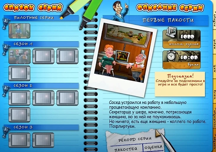 Снова копирование, но теперь продолжения – пляж и яхту заменили на близкую русскому человеку базу отдыха в дачном поселке. Никаких улучшений в игре не было – наоборот, добавились баги (действия соседа в облаке мыслей не отображались) и зачем-то ввели ограничение по очкам для прохождения на следующий уровень.