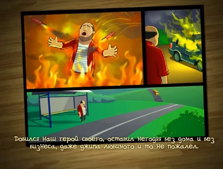 «Каникулы олигарха» получились куда жестче всех остальных игр серии – комбайнер не просто издевается над богатеем, а желает выжить его из села всеми силами. Проказы в духе «подлить в напиток шампунь» сменились уничтожением имущества молотком и поджогом дворца. Зато в игру добавили отсылки на героев «Нашей Russia».
