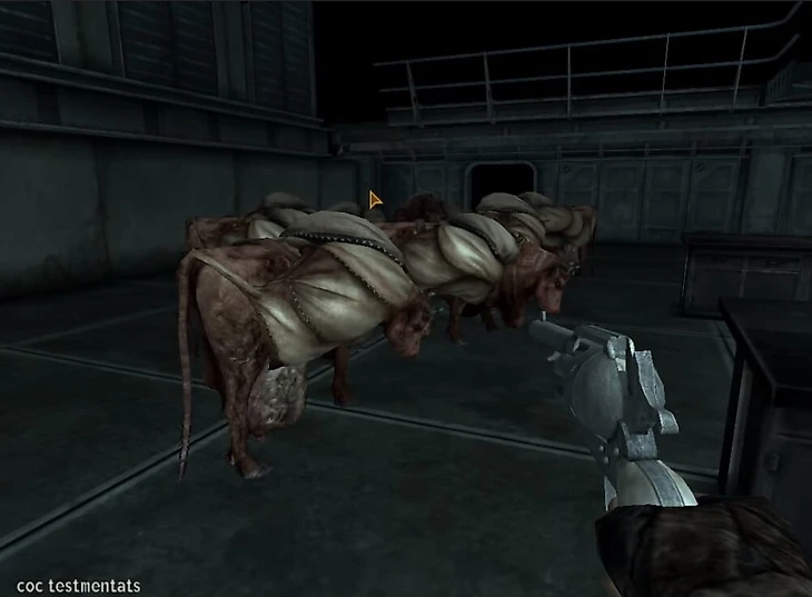 Попасть сюда без консольных команд нельзя – игрока телепортирует только после ввода команды COC вместе с id нужной ячейки. Например, «coc mentats» перекинет вас в комнату с браминами. С полным списком можете ознакомиться вот здесь.