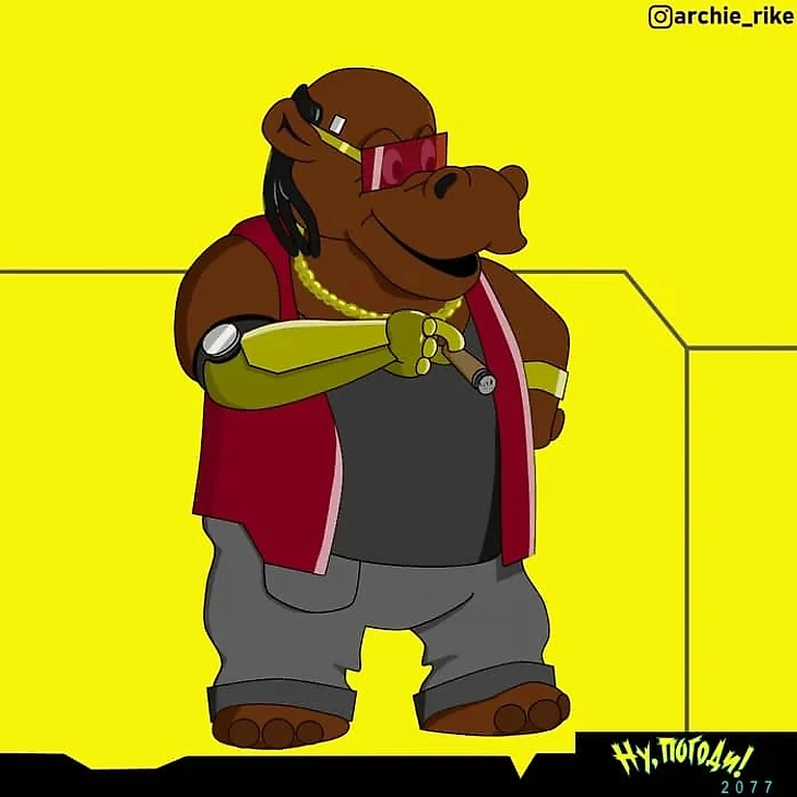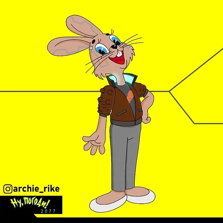 Культовый советский и российский мультсериал «Ну, погоди!» выпускается с 1969 года. Каждую серию Волк пытается съесть Зайца, но сообразительный ушастый никогда не попадается в его ловушки. На этом мультике выросло не одно поколение, и иллюстратор Александр Богатенков мощно ударил ностальгией по олдскулам, изобразив персонажей в стиле Cyberpunk 2077.