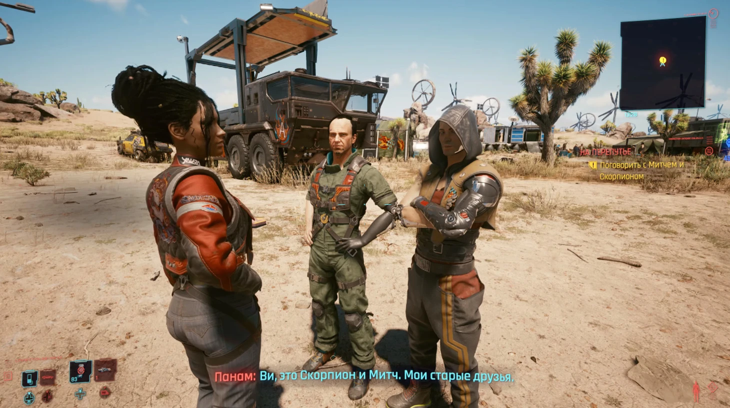 В лагере Панам познакомит вас с друзьями – Митчем и Скорпионом. Никто не помешает вам взять снаряжение, несмотря на конфликт кочевницы с семьей.