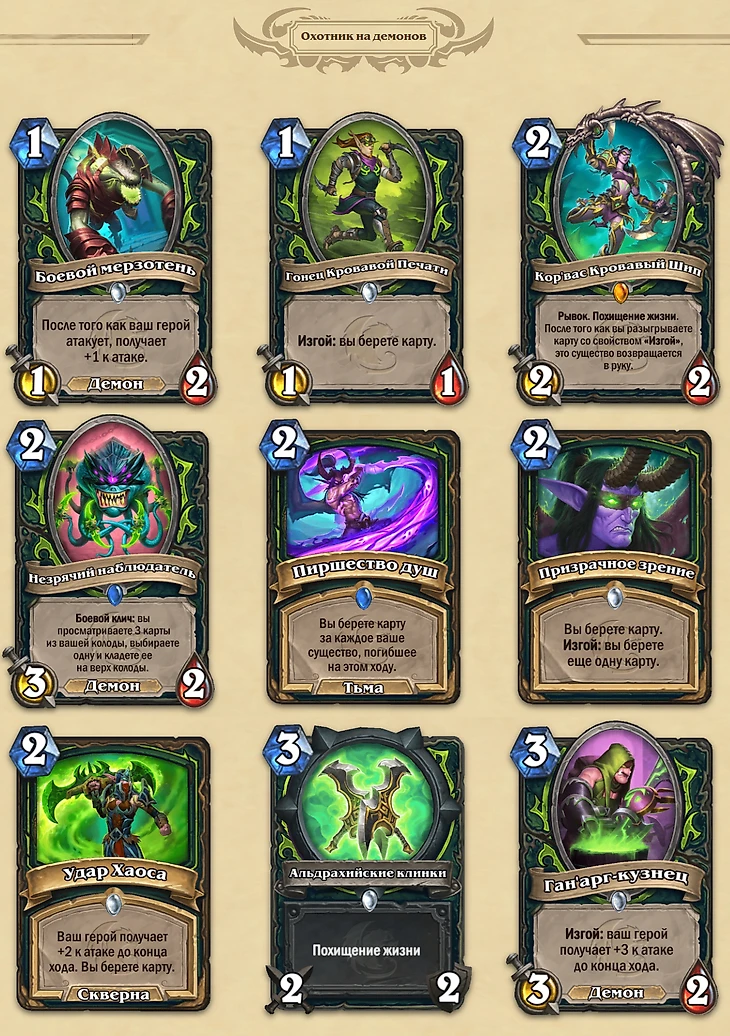4 карты из «Руин Запределья» (4 классовых карты Охотника на демонов);