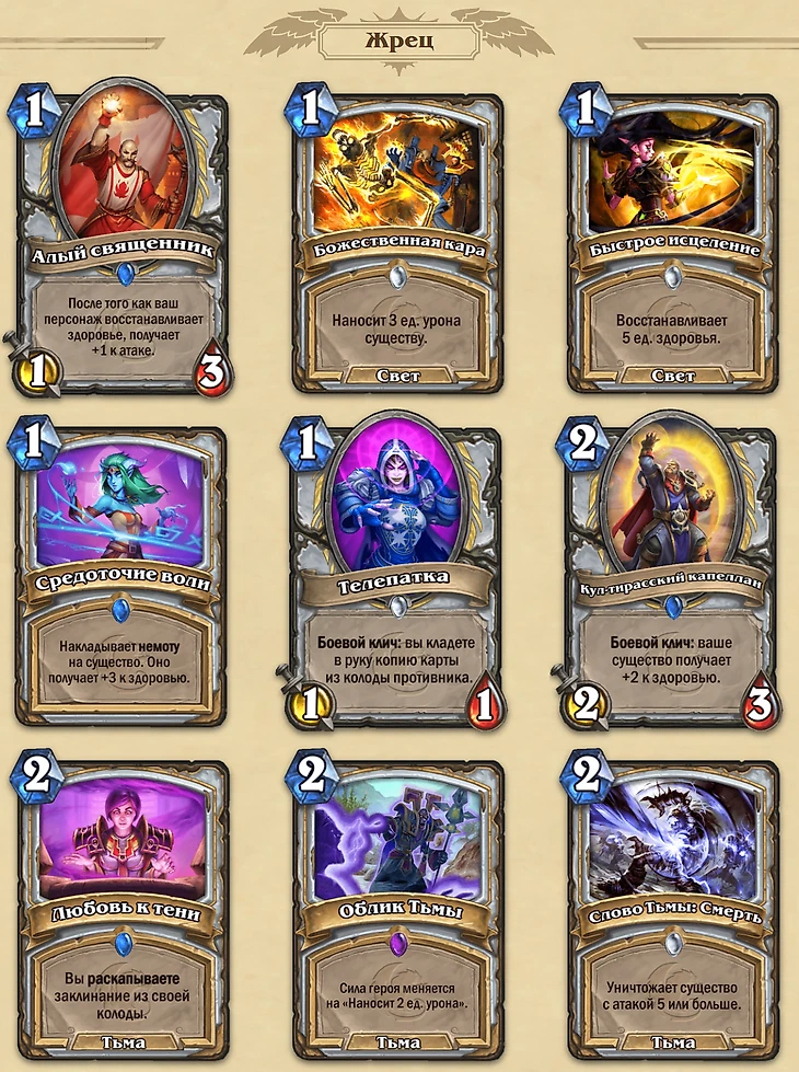 «Запрещаю вам воровать карты», – сказал кто-то из разработчиков, и Жрец остался без «Внутреннего зрения», «Украденных мыслей» и «Контроля разума». А еще без «Слова тьмы: Боль», «Круга исцеления», «Темного безумия» и других веселых карт для воскрешения, ОТК и драконов. Как теперь будет играть Андуин? Возможно, с трудом на «Порче» – это может быть весело.