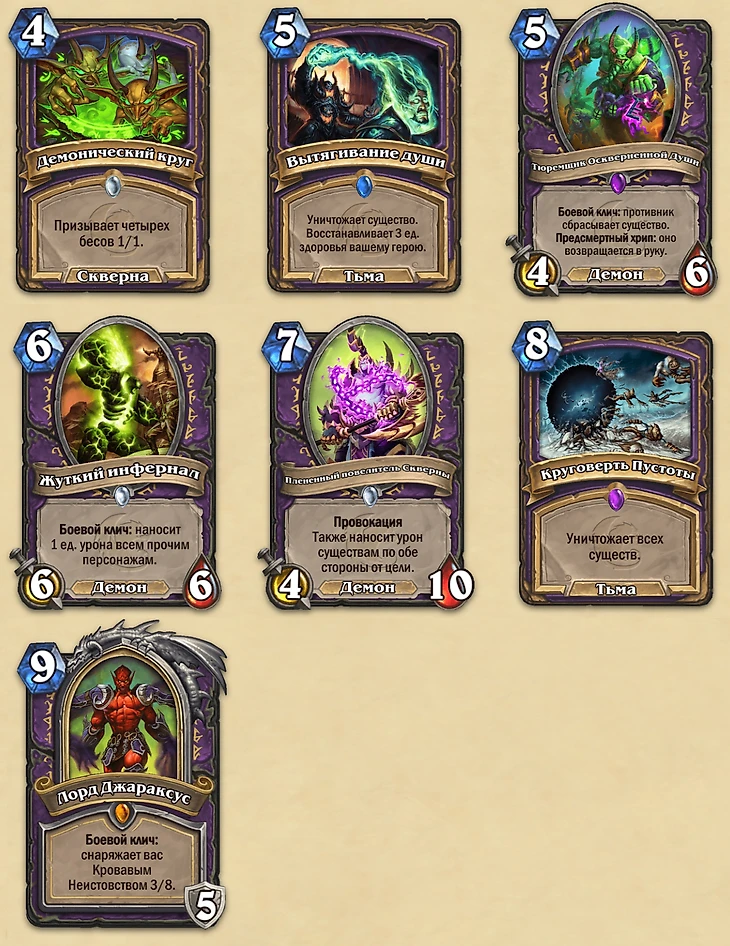 Джараксус стал героем, а не обычной картой – как рыцари смерти, Зул’Джин и Галакронд. То есть, его больше нельзя вытащить из раскопок демонов и карт, добавляющих случайных демонов – только положить в колоду и ждать девятый ход.