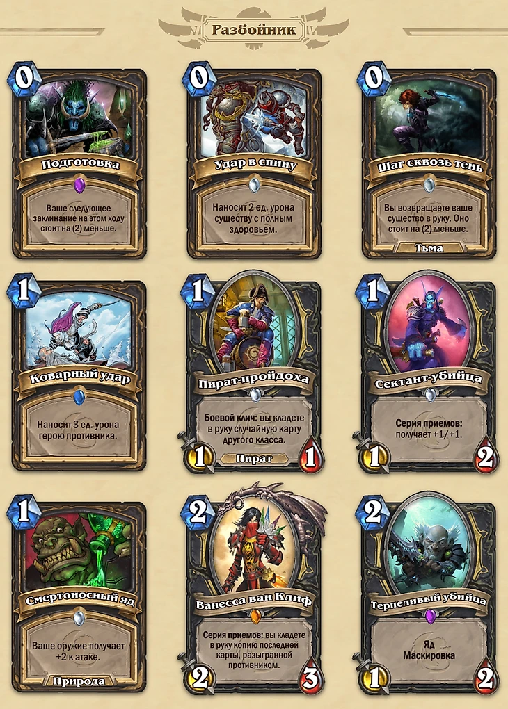 54 карты из Базового набора (41 классовая карта, 12 нейтральных);