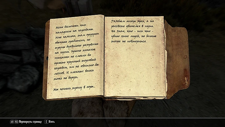 На одной из лежанок находится дневник. Его автор не понимает, куда пропадают караваны, и понимает, что они явно не попали в лапы диких животных. А поскольку это место окружено лагерями Изгоев, то становится понятно, что произошло и с теми пропавшими караванщиками, и с этими.
