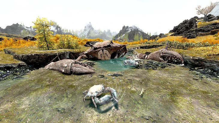 «Скайриму» жутко не хватает боссов – и этот гигантский краб, который выше обычных людей, мог бы стать отличным соперником. Вместо босс-файта мы можем убить тех трех грязекрабов поменьше, которые живут рядом с его останками.