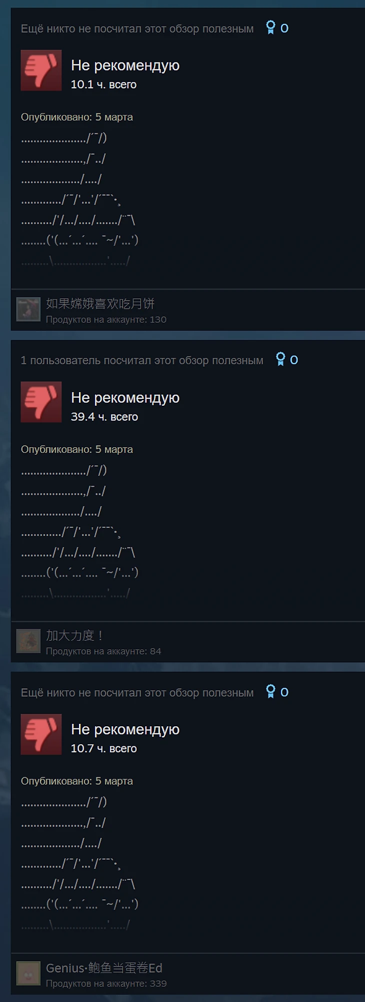 Китайские игроки заспамили отзывы известным граффити из символов с требованием вернуть деньги.