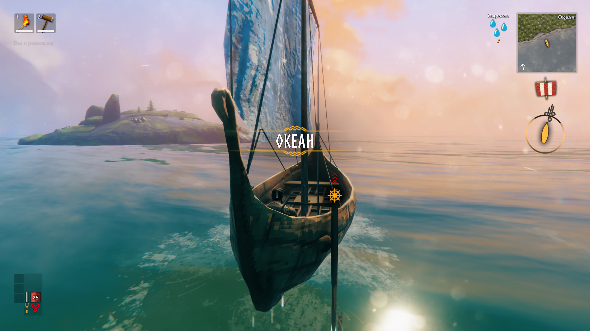 На карте найти водоемы труда не составит. По океану лучше перемещаться на плоту или драккаре, так как плавание в нем быстро истощает выносливость.