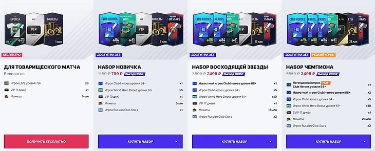 Но доступ к ЗБТ можно получить быстрее – угадать пару комментаторов, выиграть один из конкурсов во время трансляции или купить один из клубных наборов. Помимо доступа к ЗБТ каждый такой набор включает в себя от 7 до 21 игроков, а также внутриигровую валюту. К примеру, в самом крупном (стоимость – 3499 рублей) вы получите легендарного игрока с рейтингом 94 или больше, двух игроков с рейтингом не меньше 88, 20 миллионов монет, SVIP-аккаунт (дает скидку на трансферные переводы, бонус к наградным монетам после матча, а также увеличивает получаемый менеджером и игроками опыт) на 7 дней и еще 18 игроков с рейтингом от 61+ до 84+, что будет отличным стартовым бонусом и позволит сразу создать очень неплохую команду. Купить наборы можно до начала открытого бета-теста.