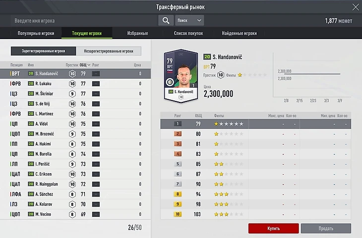 А еще у трансферного рынка в FIFA Online 4 очень удобный интерфейс. Если вы любите, когда на экране много цифр, графиков и таблиц, то вам тут точно понравится. Особенно полезная функция – история стоимости игрока (справа сверху на картинке), благодаря которой удобно отслеживать момент для выгодной покупки. Еще один огромный плюс интерфейса – все футболисты представлены списком, что ускоряет поиск нужного вам игрока.