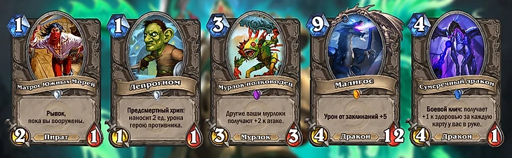 Подбирая карты для списка по критерию «чувствуешь бессилие, когда против тебя это разыгрывают», оказалось, что «Сумеречный дракон» – как раз такая карта. 4 атаки – проблема для Жреца (нечем убирать) и Охотника (может убрать любое существо, даже Мишу), тонна здоровья – проблема для аггро-колод. Даже для контрольного Воина или фриз-Мага дракон стал неприятной картой – у него не так много атаки, чтобы тратить ремувалы, но слишком много здоровья, чтобы их не тратить.