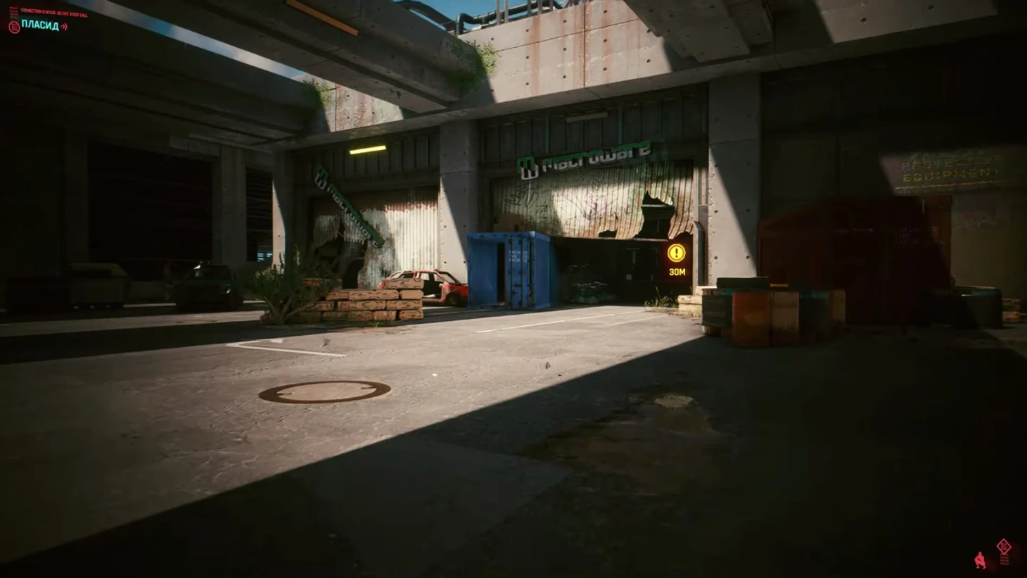 Грузовик находится с левой стороны на первом этаже. Пробирайтесь через бутики, чтобы пройти незамеченным. Фургон охраняют бандиты, и совсем недалеко находятся турели, так что будьте осторожны. Как только доберетесь до фургона – подключайтесь и поговорите с Пласидом.