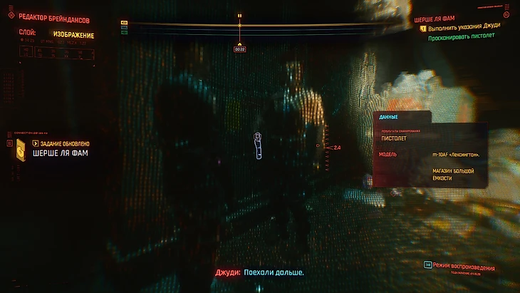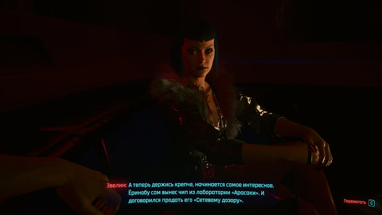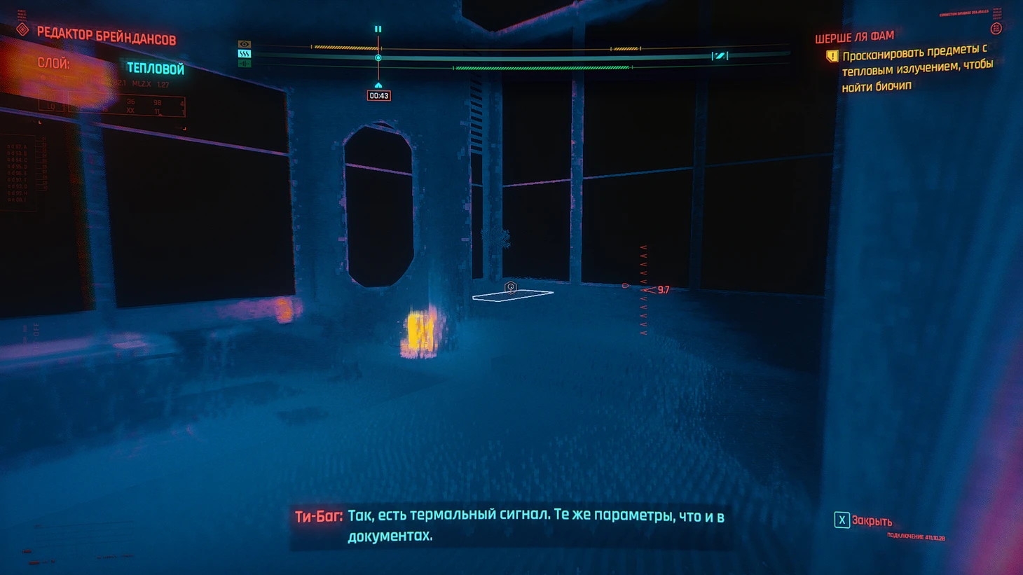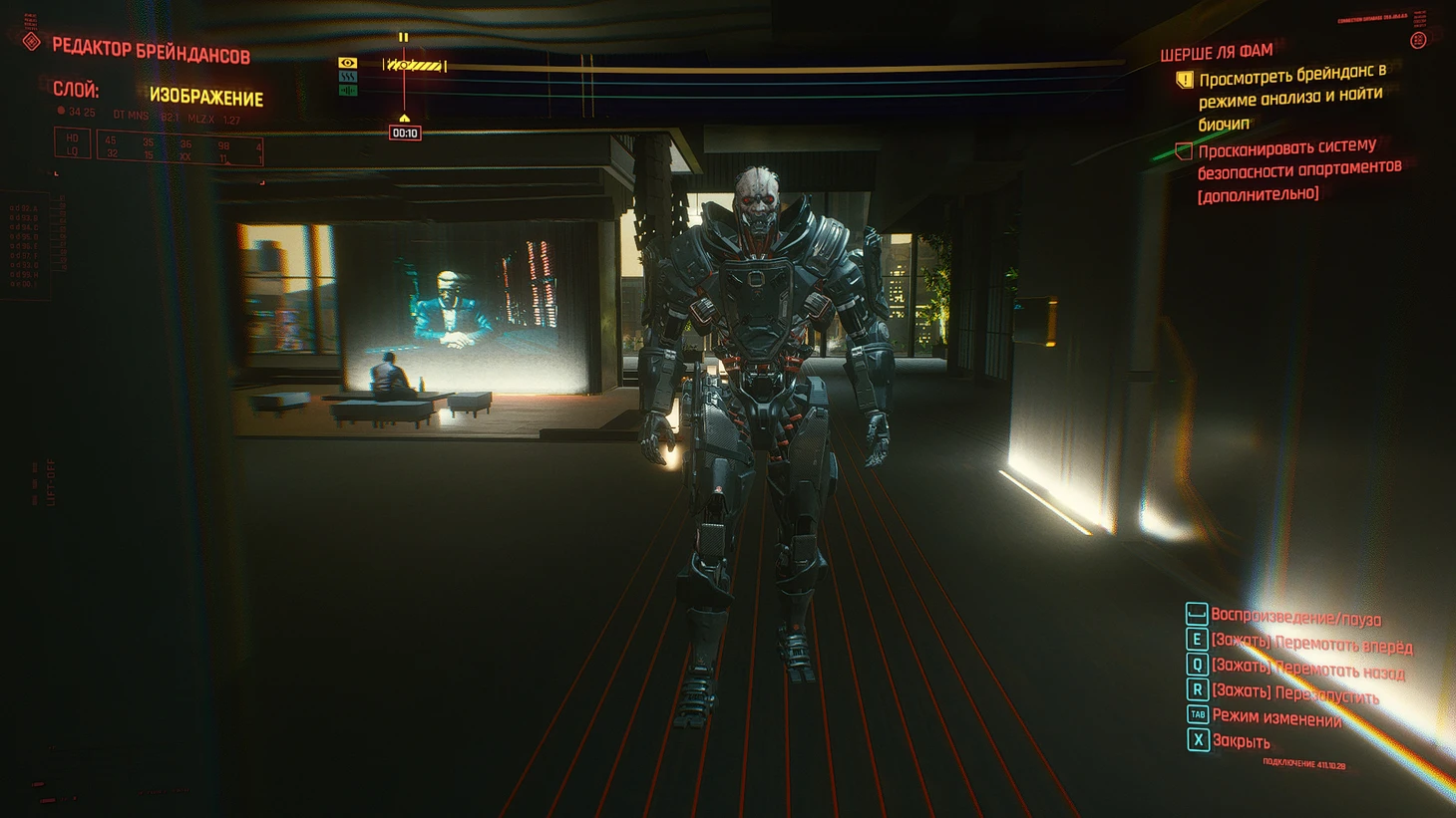 Как только вы закончите с первым брейндансом, Джуди поставит запись с оптики Эвелин в покоях Еринобу. Ти-баг будет с вами на созвоне, поэтому она будет комментировать. Ниже – таймкоды для дополнительных заданий.