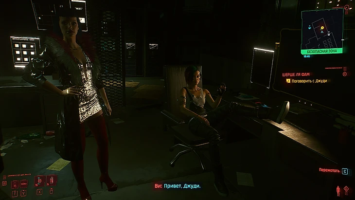 Потом она проведет Ви в каморку Джуди. Она монтирует брейндансы и познакомит Ви с этой технологией.