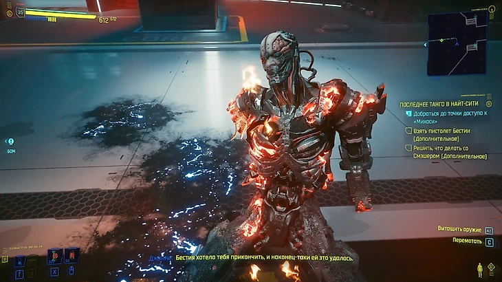 В первой фазе он будет атаковать в ближнем бою. Нужно расстрелять его правую руку, и он перейдет ко второй фазе.
