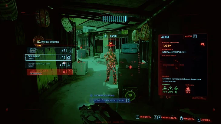 В тесных трущобах восемь врагов, снайпер и Джэхен. Можете обойти их скрытно, используя для отвлечения взлом окружающей обстановки. Не забывайте прятать их тела в ящики, чтобы вас не обнаружили. Джэхен находится в самой дальней части под защитой снайпера на крыше.