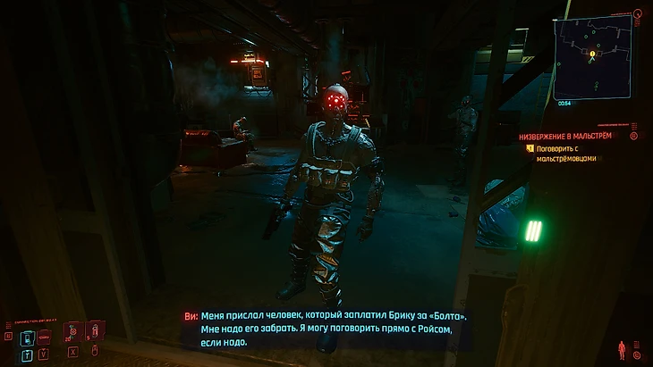 Описание квеста: «Знаешь, за что я люблю обычных чуваков из банд? По ним сразу ясно, что им надо. Денег, или секса, или власти. Или смерти своих врагов. У них все на лице написано. А этих уродов из «Мальстрема» ### поймешь. Косится на тебя такой, рыло у него светится как роутер в ночи, и поди угадай, какие там мысли его процессор обрабатывает. Поэтому я стараюсь с ними не связываться, а если связываюсь, это обычно ничем хорошим не кончается.
