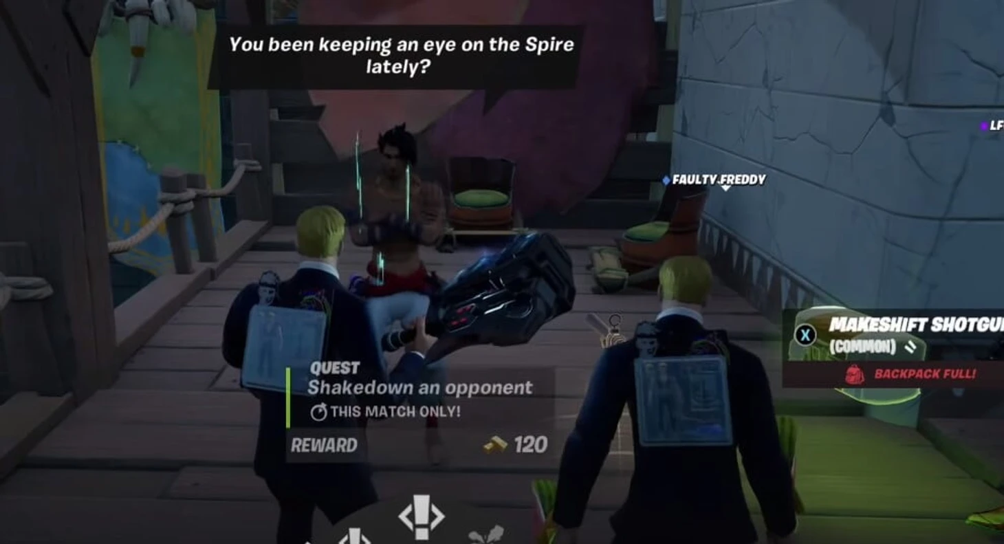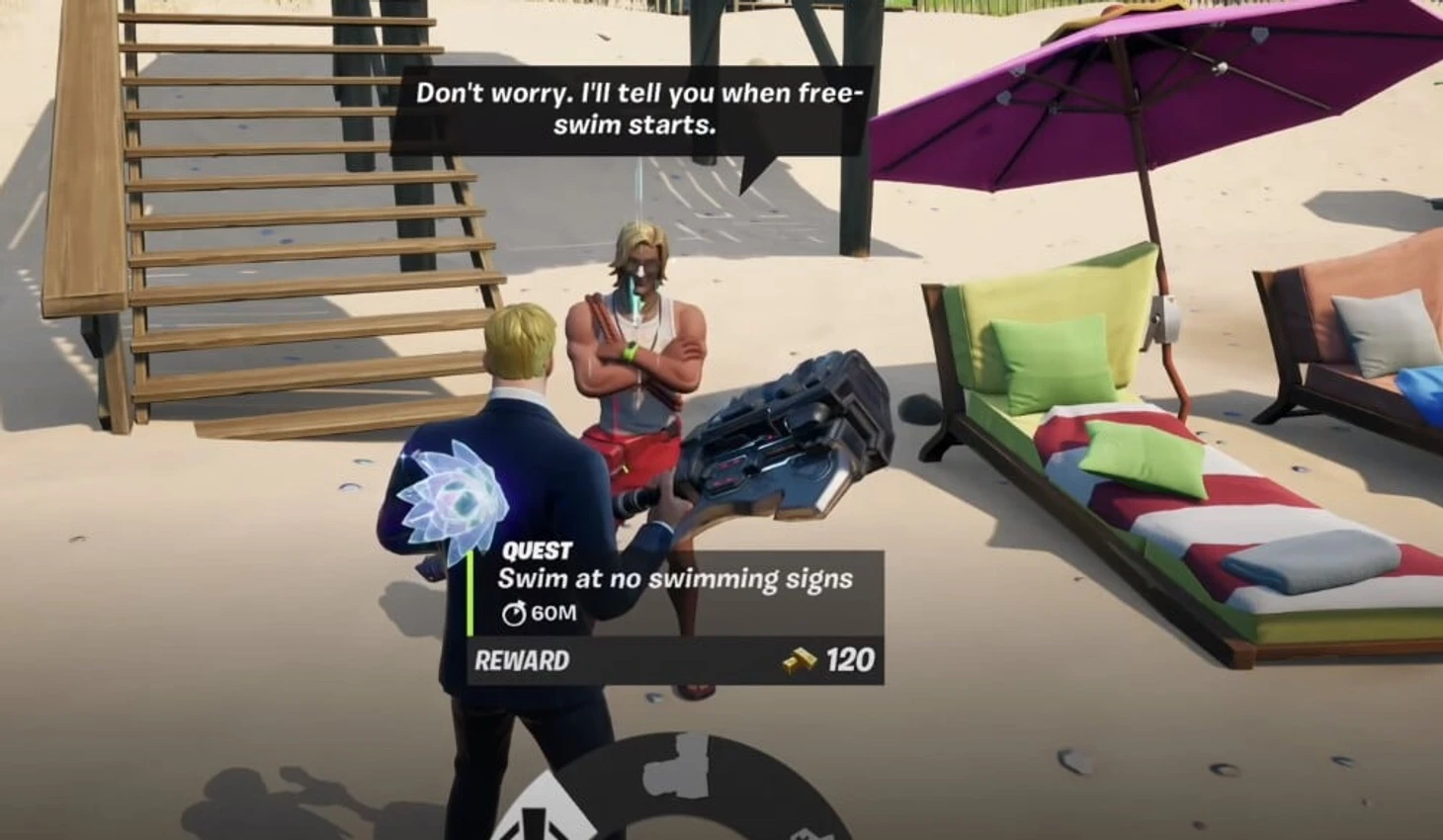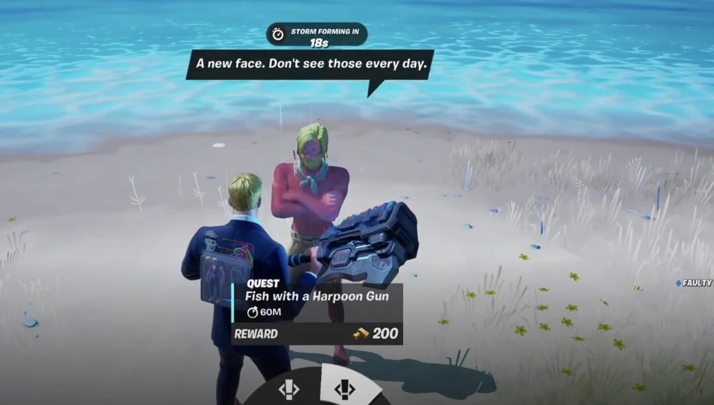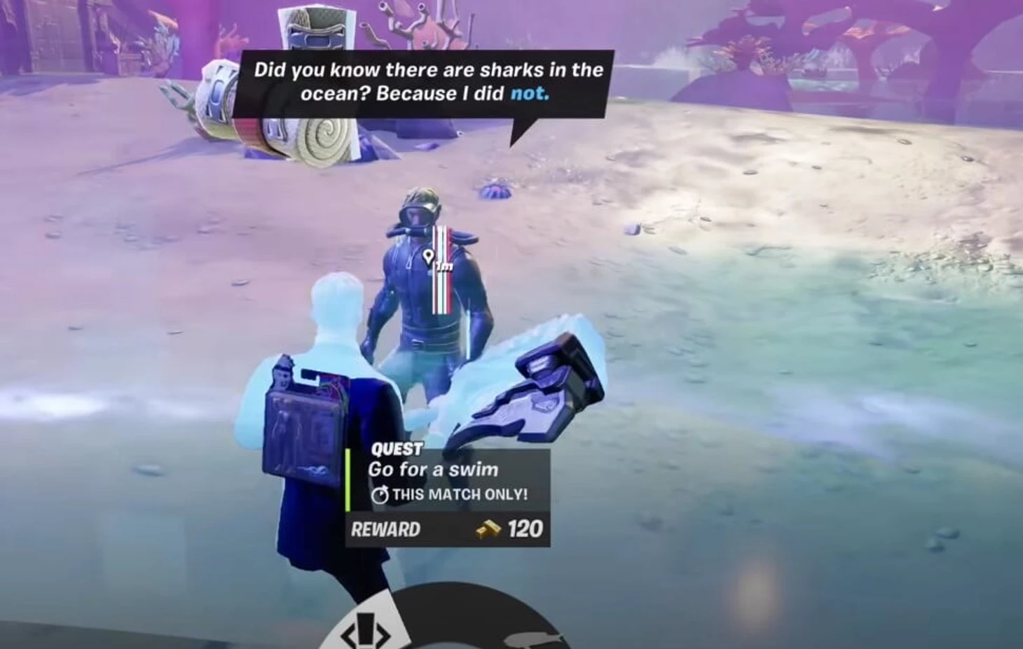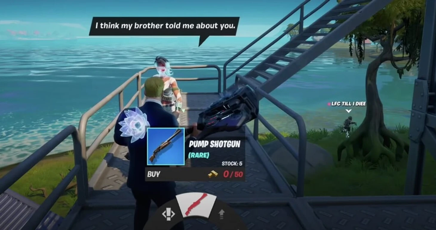 Боевой карась плавает в заливе под развалинами. Продает эпический пистолет-пулемет.
