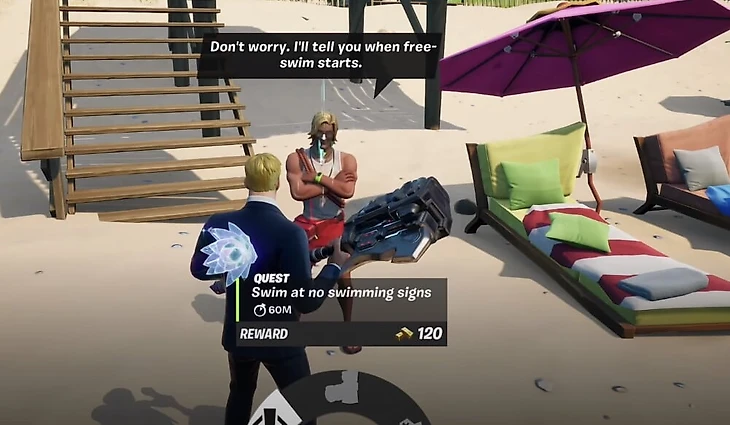 Спасатель находится на Беспечном берегу. У него можно купить данные о следующем круге бури и аптечку.