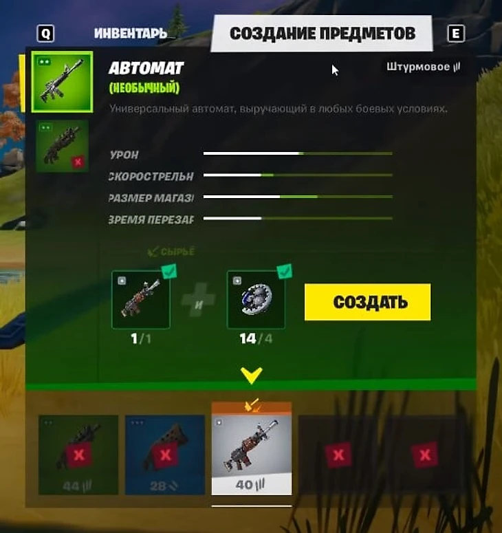 После получения запчастей найдите на карте оружие с обычной редкостью.