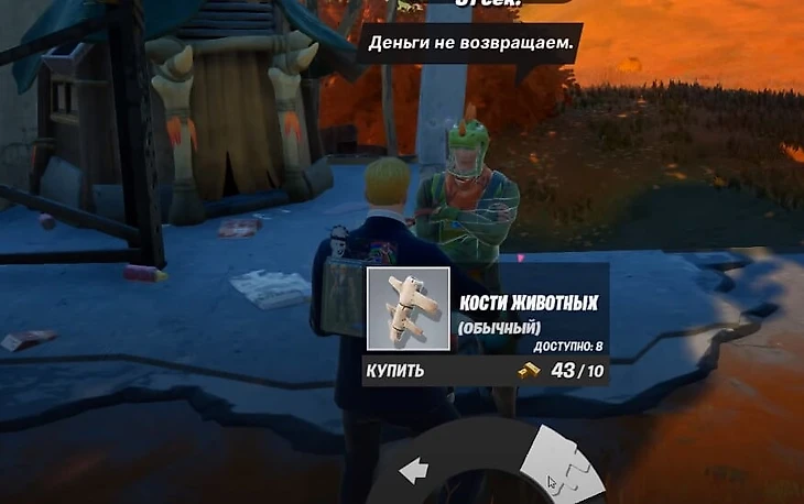 Для крафта накидки вам нужно собрать один кусок мяса и две кости. Их можно добыть на охоте в локации рядом с Рексом. У него же можно купить кости.