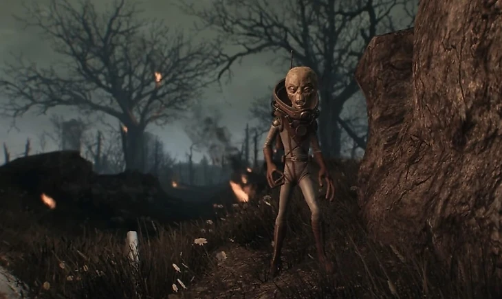 В Fallout 1 на просторах Пустоши встречалась упавшая летающая тарелка, в Fallout 3 было дополнение Mothership Zeta о пришельцах, а в Fallout 4 мы вновь видим разбитое НЛО, но уже с одним выжившим пришельцем. Так может пришелец из Fallout 4 связан с прошлыми событиями? К сожалению, никакой информации о нем в игре нет.