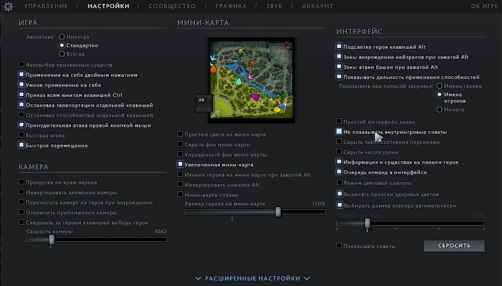 Как отключить подсказки для новичков в Доте