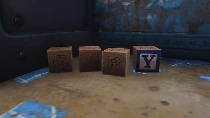 Так вот, в убежище 75 нет ни одного жителя с именем Гэри. Но это имя почему-то собрано с помощью кубиков с буквами. Возможно, кто-то из этих клонов все же выжил – ждем в Fallout 5.