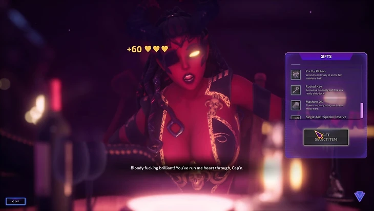 Написано все неплохо, гармонично разбавлено пошлыми шутками (ровно настолько, чтобы не вызвать у игрока кринж), но на фоне общего замеса со спасением мира слишком уж долго раскрываются дефолтные характеры «похотливой милфы» и «доминирующей демонессы».