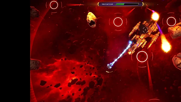 К счастью, остальные части игры интерактивны. Основна геймплея – бои. Схватки в космосе сделаны максимально просто и напоминают «Космических рейнджеров» на минималках – летаем по ограниченной площади и уничтожаем волны вражеский кораблей двумя типами атаки: слабая очередь и усиленный заряд.
