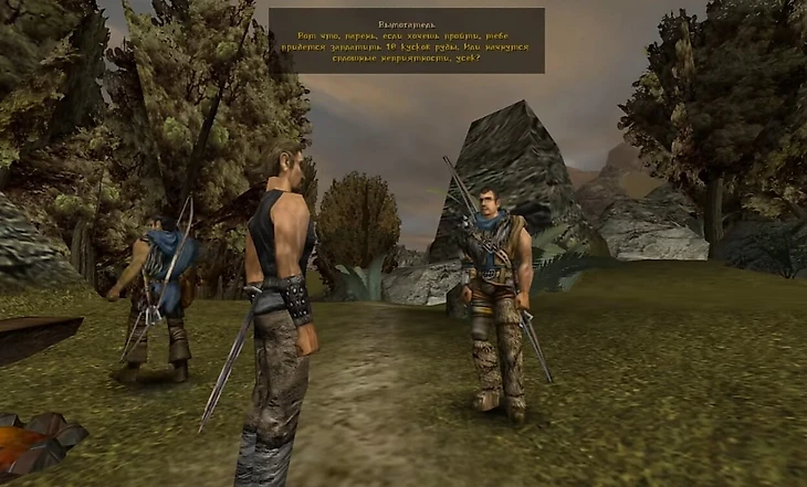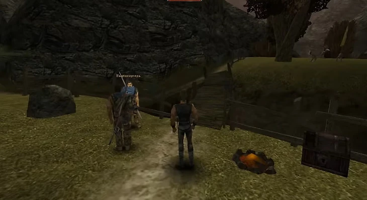 Один из проходов к Новому лагерю ведет через деревянный мост. В релизной версии это безопасное место, где кроме падальщиков игроку ничего не угрожает. А вот изначально там стояли два бандита, требующие с героя 10 кусков руды – иначе те били вас и забирали все силой.