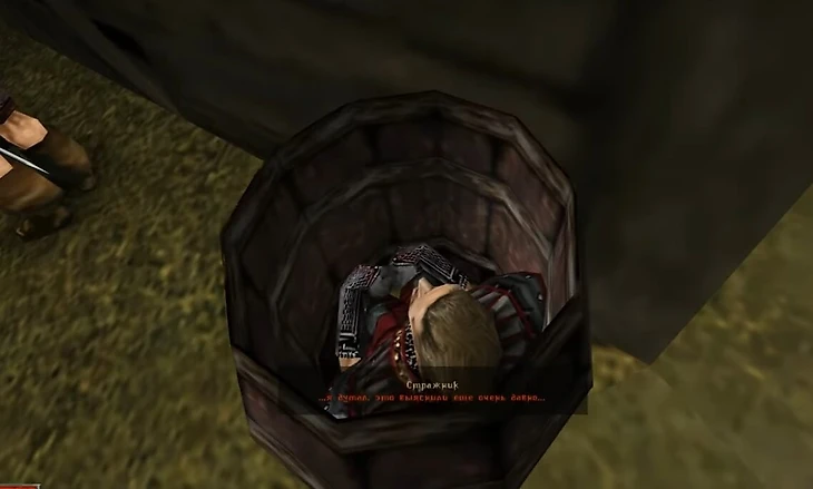 От полноценной реализации Piranha Bytes отказалась, но следы механики остались – недалеко от ворот во внутренний круг Старого лагеря около дома стоит бочка, в которую можно забраться. Фанаты в свое время предполагали, что вырезали квест, где главный герой подслушивал оттуда чей-то разговор. Но с уверенностью сказать это нельзя – разрабы только подтвердили саму механику, а не возможности ее использования.