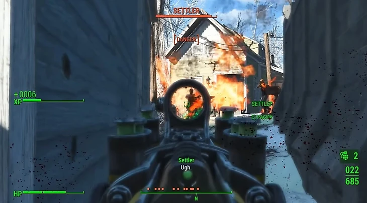 Постройка поселений – одна из фишек Fallout 4. Суть в том, что вы за счет собственных ресурсов обустраиваете разрушенное поселение и добываете жителям еду, воду и энергию. Казалось бы, они должны быть вам благодарны, но нет – они готовы убить вас, если вы украдете что-то на их глазах.