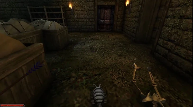 Здесь находится дверь в нужную нам комнату, и она закрыта на ключ Гомеза, но мясной жук вполне может пролезть через щели между текстурами.